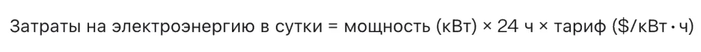 при 0,07 $/кВт⋅ч — ~6,3 $/день;